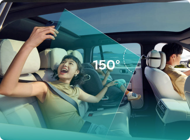 150° 와이드 각도로 뒷좌석 전체를 한눈에 확인하고, 원하는 각도로 카메라를 자유롭게 조절해 보세요.
