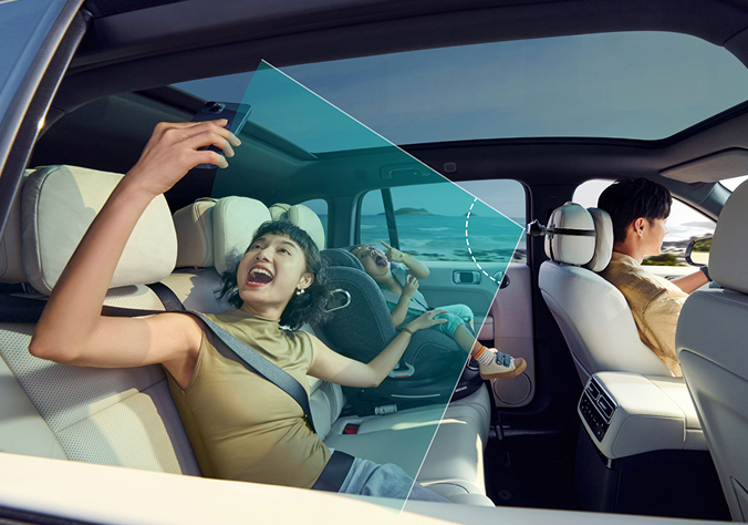 차량 화면으로 아이를 확인하며, 고개를 돌리지 않고도 안전하게 주행할 수 있습니다.