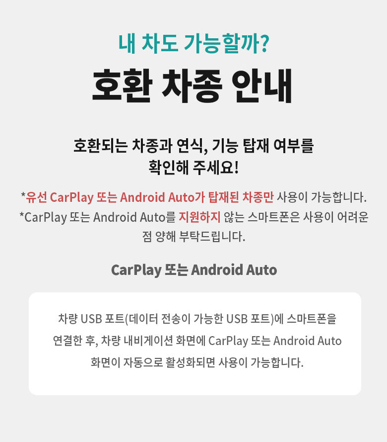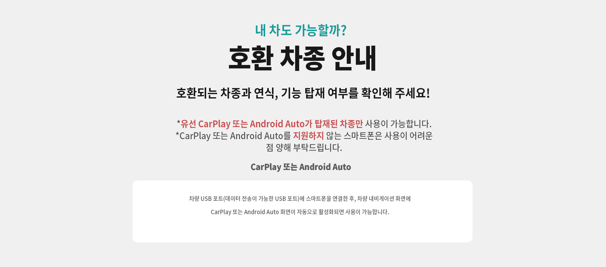 ❗호환 차종:2016년 이후 출시된 차량 중, 순정 유선 CarPlay가 탑재된 모델만 지원됩니다.