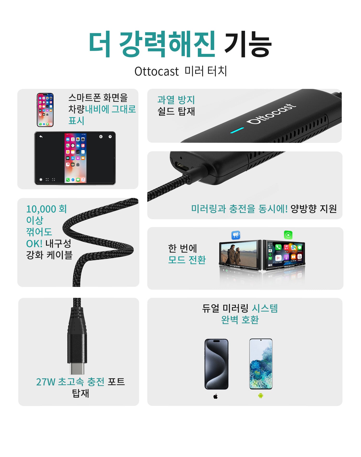 오토캐스트 미러터치 —양방향 터치 미러링/ 아이폰&안드로이드 미러링/ 무선 카플레이 동글