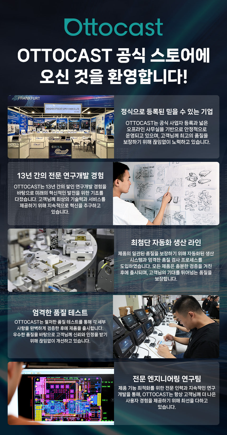 Ottocast Mirror Touch는 DP(DisplayPort) 화면 미러링을 지원하는 안드로이드 스마트폰과 호환됩니다.